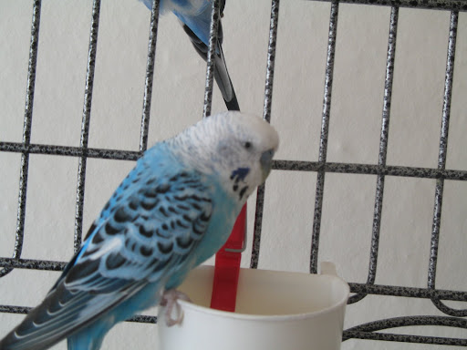 Altijd een oogje houden op haar vriendje die zelden de kooi uit komt