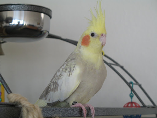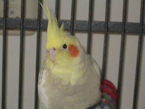 Sammie. Dit is de baas van alle vogels. Het is een popje en ze kan goed duidelijk maken dat er naar haar geluisterd moet worden. Zelfs Spikey luistert naar haar  ::) . Maar ja Sammie vind het dan ook erg leuk om in hun staarten te bijten.