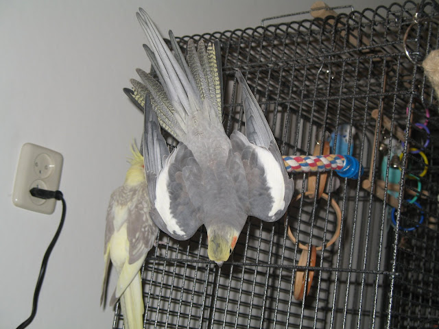 Zo hier de foto's. Izzie is helaas nog in de rui, dus een beetje rommelig verenkleed.