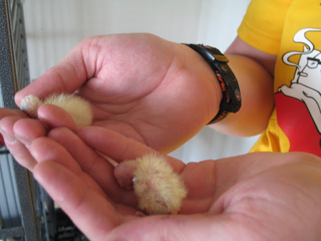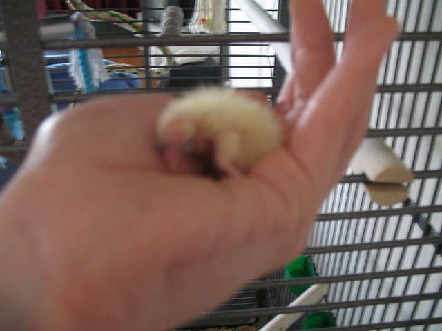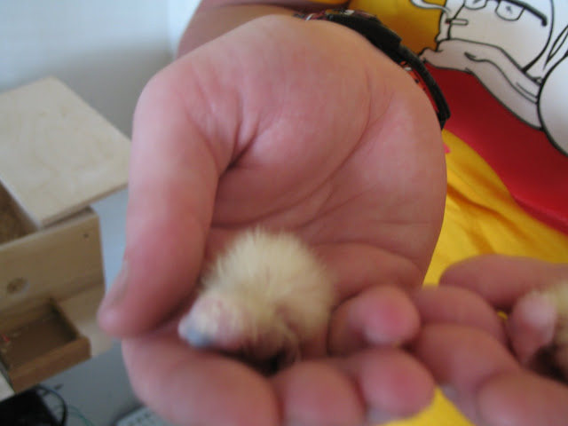 Deze twee foto's zijn nog van gisteren. Toen was ik nog niet uit mijn eitje gekropen. Bailey is hier 2 dagen oud.