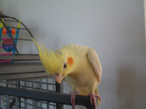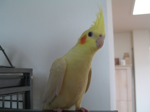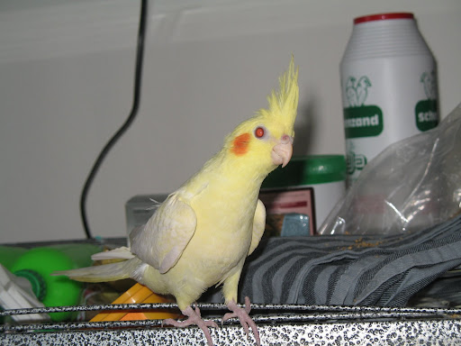 Ik ben Fientje en ben nu 7 weken oud. Ik moet zeggen dat ik heel wat lol beleef in deze leuke wereld. Mijn baasje zegt dat ik een valkje met karakter ben. Ik ben altijd sneller geweest dan mijn broertje/zusje, kon in ieder geval het hardste bedelen en kreeg daarom ook heel veel eten. Ik ben 3 dagen jonger dan Bailey, maar dat was eigenlijk nooit te zien. Nu eten we een weekje zelfstandig en daar was ik het eerst niet mee eens hoor. Ik ging gewoon door de tralies naar mijn Papa schreeuwen, dat zijn toch geen manieren, ik vond het heerlijk om gevoerd te worden. En waar ik het beste in ben is ........... aandacht vragen. Ik ga gewoon de hele tijd heen en weer klimmen aan de tralies en fluit daarbij de hele tijd. Tja mijn baasje is gewoon mijn beste vriendin. Ze kan zo heerlijk met me praten en kroelt mij zo lekker. Dan vind ik het gewoon niets dat ik in de kooi moet zitten. We hebben ook een klein kooitje, omdat mama ons veertjes er nog steeds uit plukt en ik moet je zeggen dat doet wel heel veel pijn. Ik ben dus een popje, maar ik ben gek op fluiten. Ik zit flink te oefenen, maar meestal kom ik niet verder dan Hallo, maar dan zonder letters, maar wel de zelfde klank. Buiten de kooi vind ik het leukste om gewoon rustig bij mijn baasje te zitten, ik hoef echt niet de hele tijd daar uit te hangen waar de andere zijn hoor. In de kooi ben ik veel aan het ondernemen, maar vind het ook heerlijk om lekker te kroelen met mijn broertje/zusje. We kennen elkaar natuurlijk ook door en door en kan dus alles met hem............ Op hem staan, over hem heen lopen, heel hard met mijn vleugels flapperen als hij naast me zit, hem van zijn stok of laten donderen. Hihi we zijn echt zus en broer/zus van elkaar. Ik voel me helemaal op mijn gemak hier en ben blij dat ik hier gezellig mag blijven wonen. Mijn baasje zegt dat ik het tamste valkje ben die ze kent, ze kan me gerust met haar vollen handen vast pakken, ik vind helemaal niets erg.