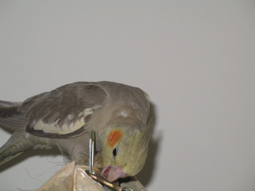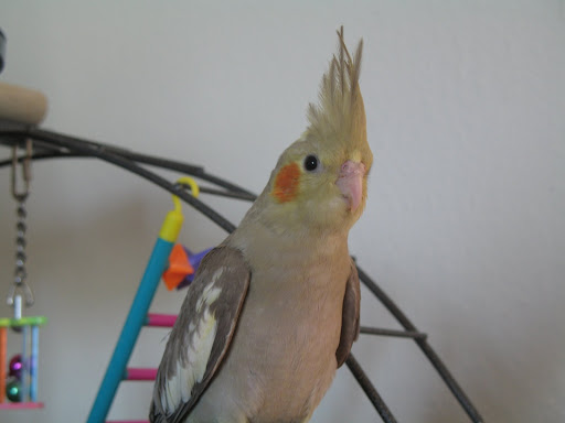 Ik ben Bailey en ben al bijna 8 weken oud. Mijn baasje zegt dat ik een rustig en bedachtzaam valkje ben. Het gaat ook heel goed met me. Vanaf het begin heb ik altijd alles rustig bekeken, er is ook zo veel te zien, er komt geen eind aan. Eigenlijk wil ik vanaf het begin al lekker mee doen met mijn papa en mama en nu ik dan eindelijk ook groot ben, kan mijn lol niet meer op. Zo ging ik al vroeg klauteren, vliegen en aan het eten knabbelen. Toen Fientje en ik nog bij papa in de kooi zaten, ging ik ook al veel zelf eten en hoefde ik een stuk minder te bedelen dan mijn zusje. Ook kan ik al veel beter en beheersder in het vliegen. In de kooi ben ik lekker rustig en houd me bezig met lekker eten, klauteren en spelen. Aandacht vragen en fluiten dat laat ik aan mijn zusje over, dat is niets voor mij, ik vermaak me namelijk echt wel. Buiten de kooi, wil ik het liefst met alles spelen, of papa en mama na doen. Ik raak echt alles aan met mijn snaveltje en vermaak me uren. Mijn baasje pakt mij ook wel eens om lekker bij haar te zitten. Dat vind ik ook best hoor, dan laat ik me even kroelen en ga me lekker wassen op haar schouder en met haar haren spelen. Ik ben ook dol op Fientje, lekker kuiten samen, kroelen en lekker dicht tegen elkaar aan slapen. Ik zelf weet natuurlijk wel of ik een vrouwtje of mannetje ben, maar dat verklap ik lekker nog niet, dat blijft een verrassing! Nou ik ga lekker slapen om morgen rustig op ontdekkingsreis te kunnen.