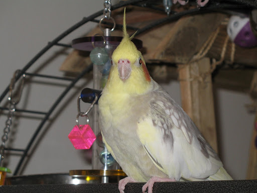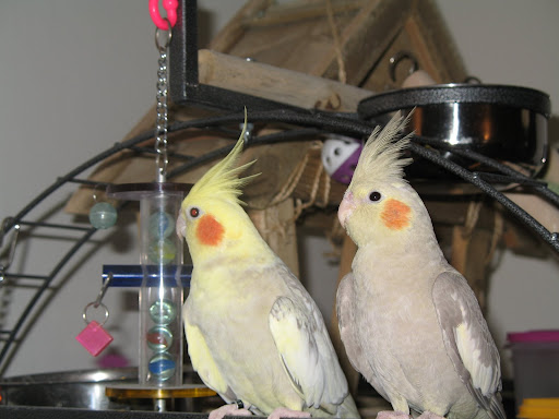 Ik denk dat die verliefdheid wel zal blijven  :D . Met de dag wordt het vliegen meer behendig. Bailey wil alleen nog af en toe van de kooi afdonderen als hij teveel in zijn spel opgaat  ::) . Ze hebben nu ontdekt hoe ze op mijn hoofd kunnen landen, heel handig als je aandacht wil  ;D .