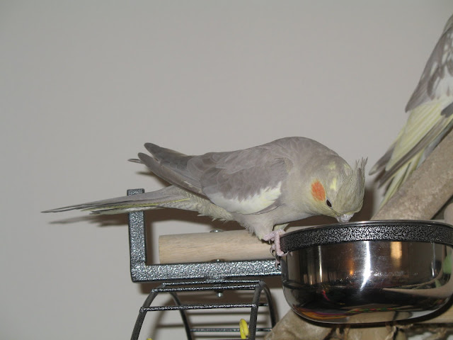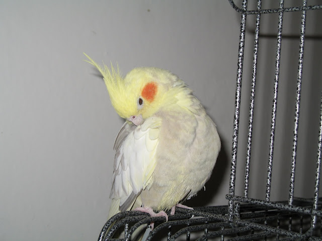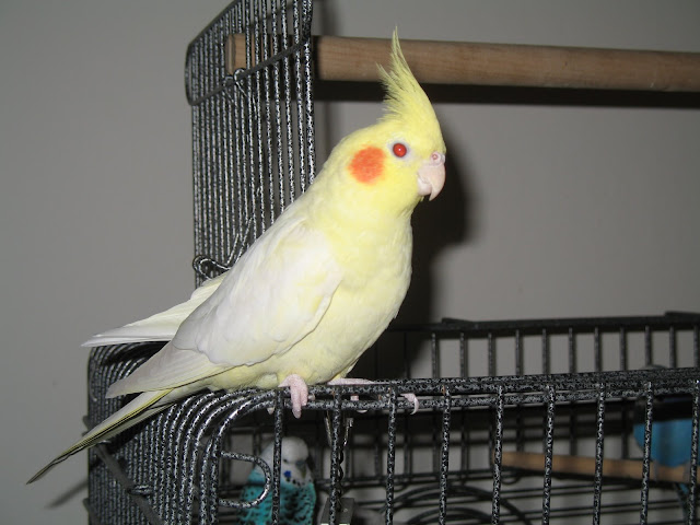 Hier gaat alles goed. Spikey heeft een beetje last van zijn hormonen. Hij doet er alles aan om Izzie zo ver te krijgen dat hij kan wipwappen  ::) . Hij zingt, loopt haar achterna .... er zit geen rust in hem. Izzie wordt daar ook weer lekker opgefokt van. Het wil nog wel eens werken als ik een bakje met vers koud water in de kooi zet. Dan kan Izzie het niet weerstaan en gaat in het waterbakje kippetje zitten, waardoor Spikey zijn zin krijgt. Echt maf hoe Izzie op water reageerd.