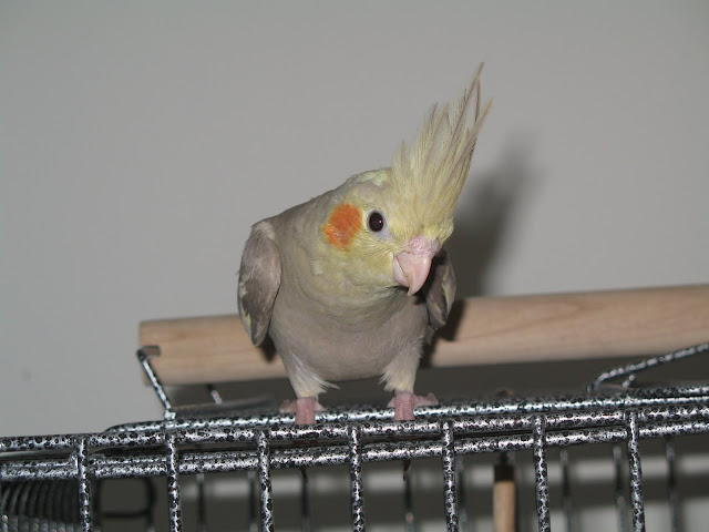 Vandaag is mijn lieve Fientje jarig. Zij kwam 3 dagen later dan Bailey uit het eitje. Ik hoopte op een lutino meisje en mijn geluk kon dan ook niet meer stuk toen ik daar een lutino donsje zag liggen. Dit betekende dat ik vanaf het begin wist dat ze hier mocht blijven wonen. Het is misschien daarom dat ik zo'n sterke band met haar heb opgebouwd. Fientje is echt geweldig. Ze verbaasde me door al snel Bailey in te halen qua grootte, gewicht en liet zien dat ze ons totaal vertrouwde en dan ook helemaal geen angst liet zien, maar juist ontzettend nieuwsgierig was en genoot van alle aandacht van ons. Ze is echt een mensen valkje geworden. Ze vindt het echt geweldig om bij je te zitten en aandacht te krijgen van je. Ze is gek om op je vingers te zitten. Als je je vinger door de kooi steekt gaat ze hier meteen op zitten, als je je hand in de lucht steekt als ze uit de kooi is, komt ze hier meteen naar toe gevlogen. Ze kan zich naast het vele bij ons zitten, gelukkig ook vermaken met de andere valkjes en speelt regelmatig met hen en gaat op onderzoek uit.