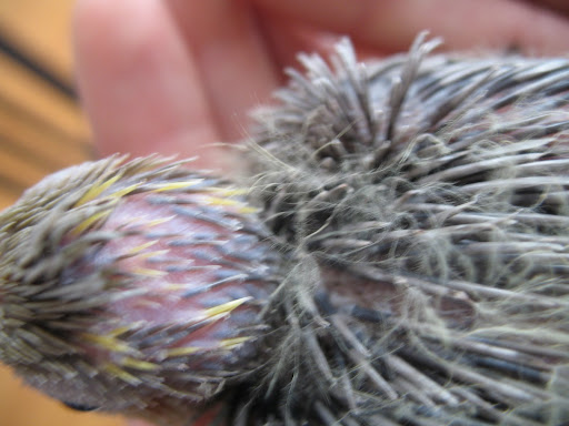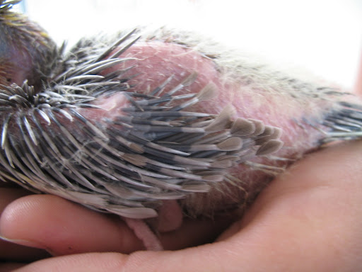 Sally denkt dat Bailey toch hele lichte grijze veertjes heeft en ik vind dat ook wel. Bij Fientje twijfelen we heel erg, maar weten dan ook niet goed hoe we pareltjes kunnen zien.