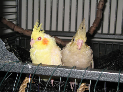 SInds gisteren zitten Bailey en Fientje op stok  :D . Bailey had opeeens door hoe hij hoger in de kooi moest komen. Fientje werd er gefrustreerd door helemaal alleen op de bodem van de kooi te zitten. Na heel wat pogingen zat ze dan een half dag later ook op stok.